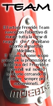Il Team ringrazia i propri sponsor MdeBikes, Geax, Formula, Mavic, Marzocchi, Fox, Divvy e Toro per il supporto avuto anche in quest'occasione.